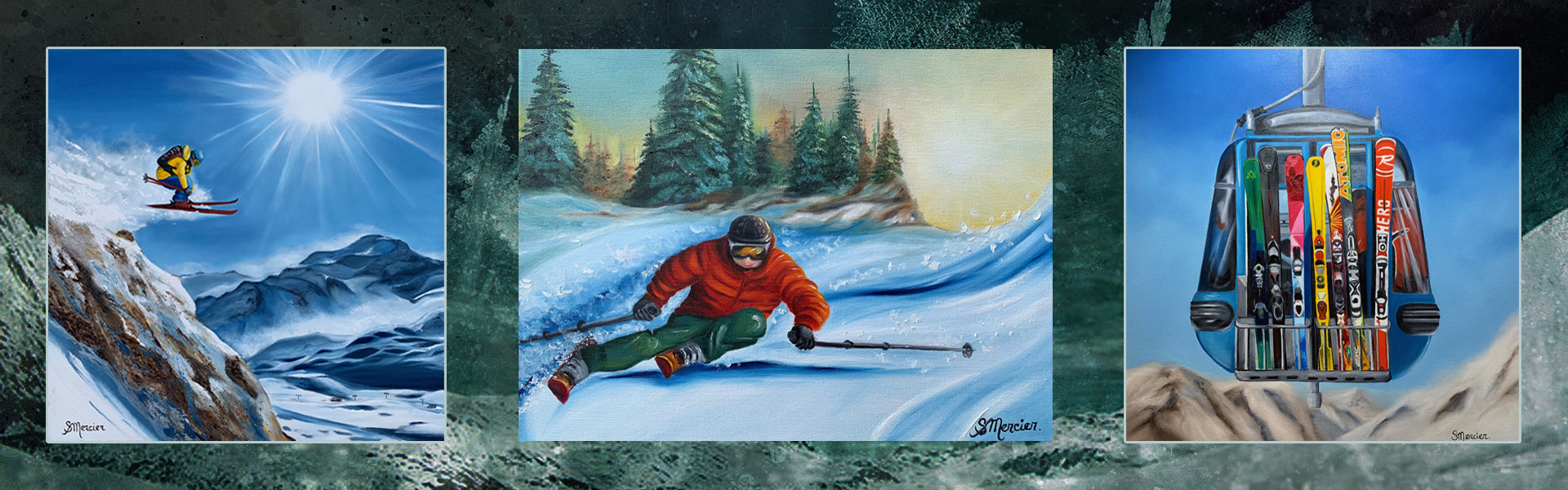 Depuis quatre ans, Sylvie collabore avec divers monts de ski québécois pour mettre en valeur leurs chalets à travers ses œuvres signées SMercier, et participe à de nombreux événements culturels et caritatifs. Plusieurs de ses tableaux ont été offerts à l’encan pour soutenir des causes locales. Elle a également établi un partenariat créatif avec les skis Ferréol, intégrant leurs modèles dans ses œuvres afin de fusionner l’art et le sport d’hiver d’une façon aussi originale qu’élégante.